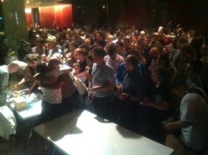 Este cara aí no foto do lado, na pontinha, de camisa branca, abraçando alguém e rodeado por tantos alguéns, foi ovacionado hoje no Lincoln Center. Já vi muita gente ali naquele palco. Mas poucas pessoas foram tão aplaudidas quanto Tom Zé. O público todo, de pé, pediu bis. E depois do bis, se levantou mais uma vez.